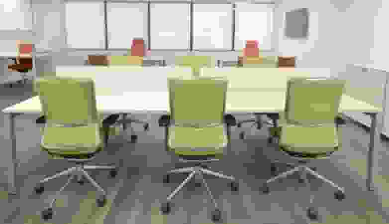 The colour of the chairs mark the difference between the executive offices and the rest of the installation. The management TNK 500 chair, as well as the Ikara visitor chair have been upholstered in warm shades. The Vital Plus desks, with a safety translucent glass desktop and chrome legs as in the meeting rooms, but in this case with a Buck support wing, which provides space for filing.
