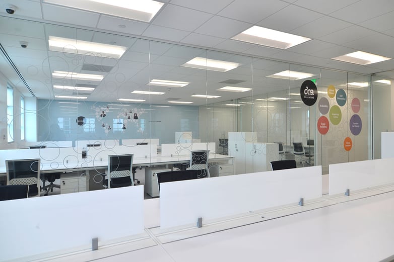 The installations, organised around large open spaces, have different independent meeting rooms separated with large windows that facilitate viewing, although they are disguised with decorative vinyl.
