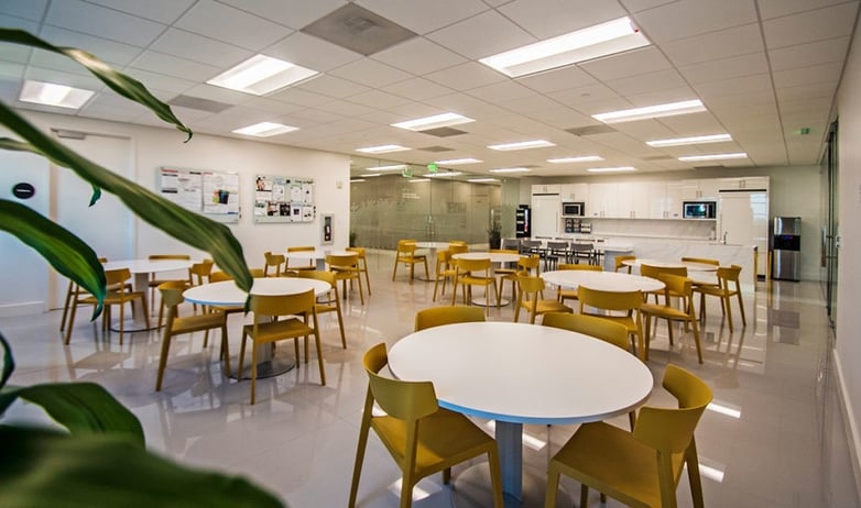 Finally, the new Cosentino offices in Miami have incorporated a large office room designed so that employees can eat or simply rest in a large and bright space. A socialisation space where employees can maintain informal relationships or look for a private space away from their own individual work stations. This area, just like the rest of the office, combines Actiu furniture with the Dekton surface on each of the tables. To achieve this, the Tabula model has intervened, accompanied by the Wing seating in a mustard colour, a tone that brings freshness and colour to a completely white space, where even the entire design of the kitchen has been made with Dekton.