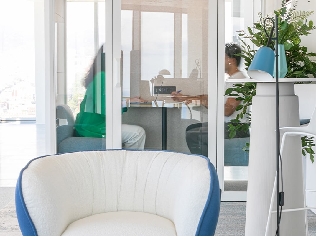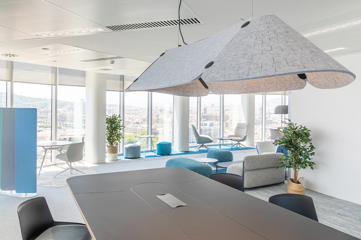 Lighting by Faro Barcelona and acoustic carpeting by Interface reinforce this atmosphere of comfort and efficiency, which is also enhanced by vegetation, acoustic control and environmental quality.