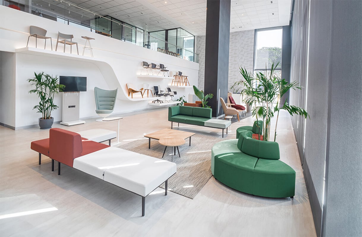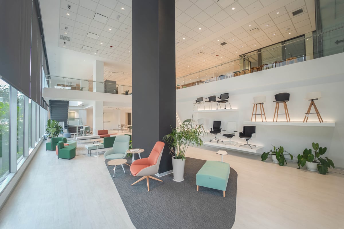 Viviane Fort Brescia's architectural studio has been responsible for a design intended to offer an intuitive navigation through the space, where visitors can enjoy a specific thematic focus on each floor. From the high-end furniture on the second floor, or specialised furniture for the health sector on the third floor; to the ergonomic seating, comfort-focused furniture or various types of flooring, wall coverings, blinds and curtains on the fourth and fifth floors. In addition to a final level, where you can explore and experience the infinite and increasingly surprising possibilities of the contract universe.