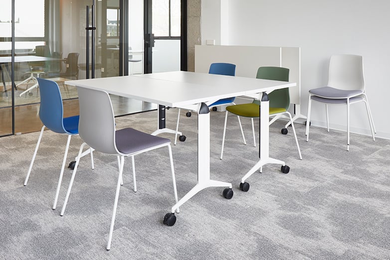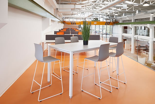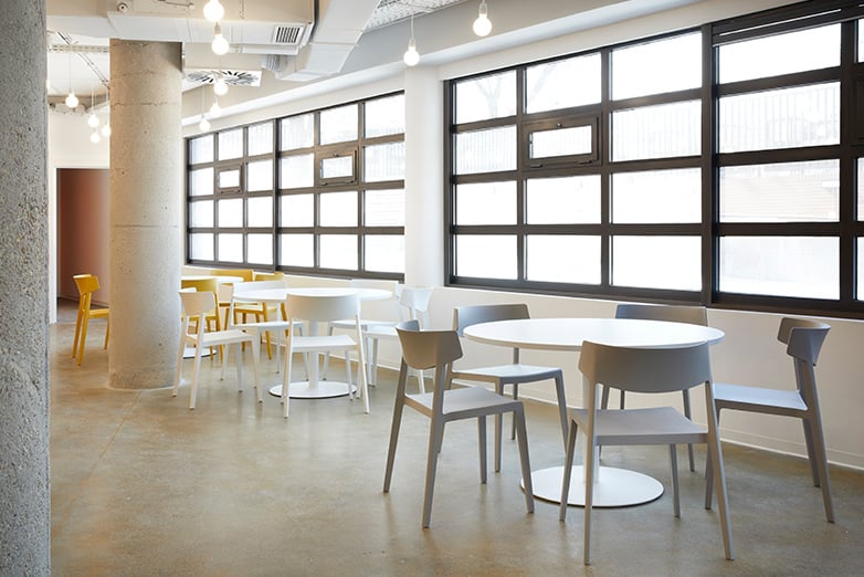In order to offer its co-workers private areas where they can meet, make presentations, or receive training, part of the space has been designed to be more compartmentalised. This is the case of the meeting rooms, presided over by elegant Arkitek tables, some of which are accompanied by the versatile Noom 50 chairs with a four-spoke base; or those for training, where the same chairs, this time with a four-legged base, are combined with the Trama folding and height-adjustable tables in order to allow for greater versatility and agility of the space.