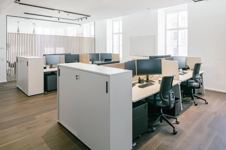 As a result of the collaborative work between Actiu, Sentup and the architect in charge of the project, Claudia Mader, different proposals emerged that were finally presented to employees and the Hartlauer Board of Directors to decide on the final details. The chosen solution maintains the fixed desks, in response to a traditional philosophy that is committed to a "territorial" model, but places them in an open space for enhanced communication and collaboration.