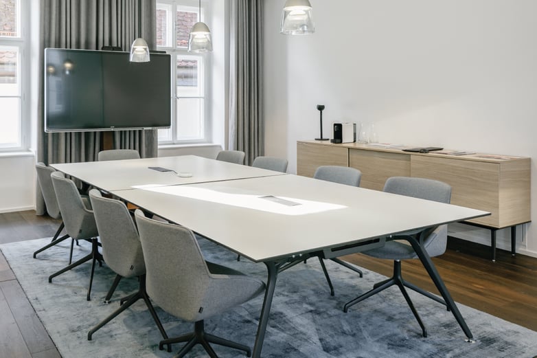 Elegant yet welcoming at the same time, the meeting rooms have been furnished with Arkitek tables that add a touch of class. The accompanying Noom 30 armchairs help to humanise a space designed to promote the exchange of ideas and communication, thanks to their wraparound silhouette and an interconnected seat and backrest that provide the necessary comfort during long meetings. With pure and minimalist lines, the Longo cabinets next to the wall help to keep things organised and offer storage, combining aesthetics and functionality in the same piece.
