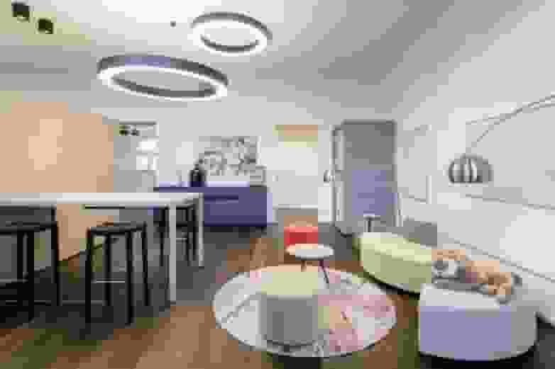 Actiu has also furnished one of the collaboration and socialisation areas of the new headquarters. In this case, and to create an environment that leads to more interaction and socialising, it has chosen to combine different environments in the same space. A more "domestic" feel, with comfortable modules and low tables from the Bend Soft Seating range that provide warmth and a homey feeling that invites you to disconnect; and another furnished with a high Prisma table that invites you to have something to drink in a relaxed atmosphere.