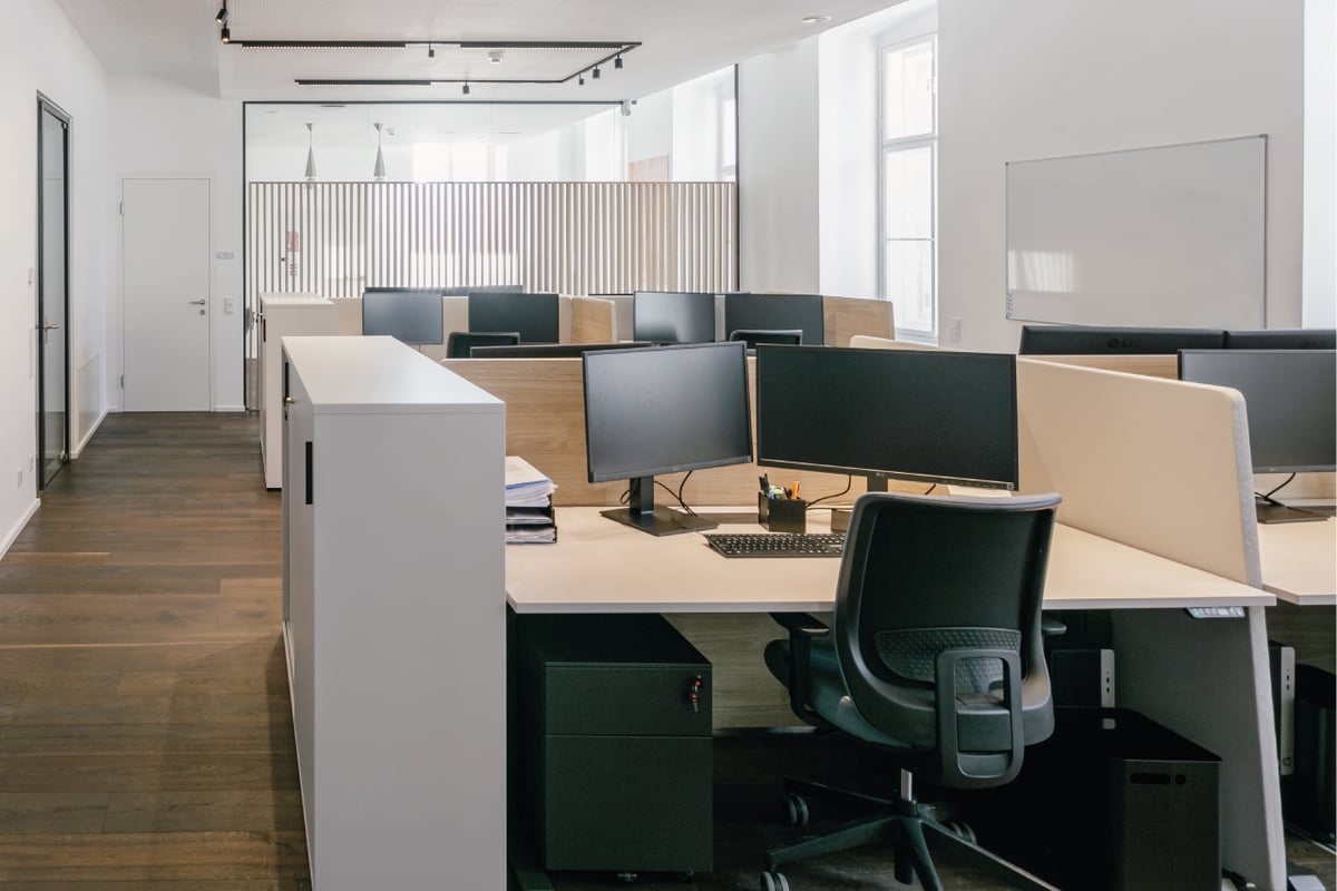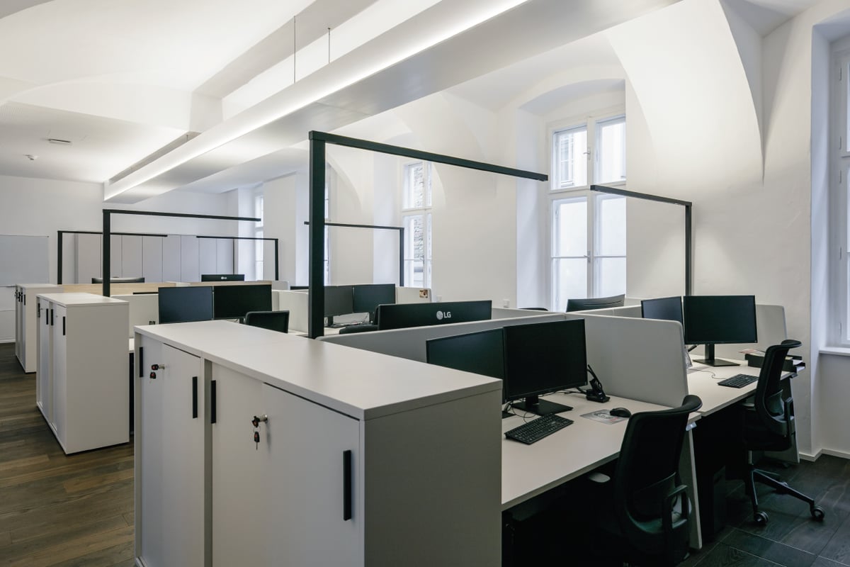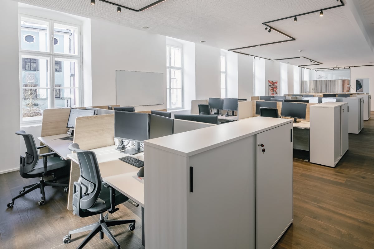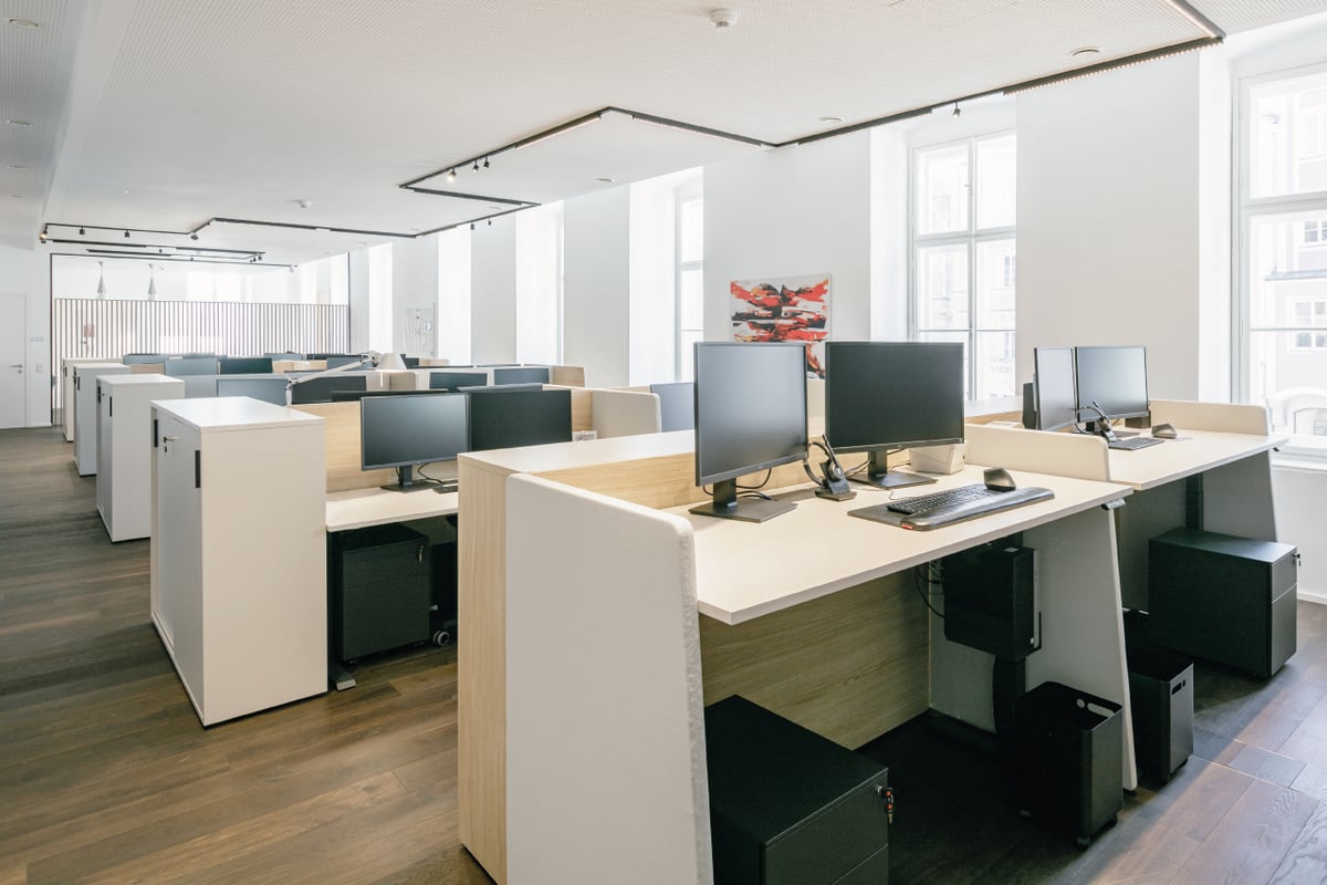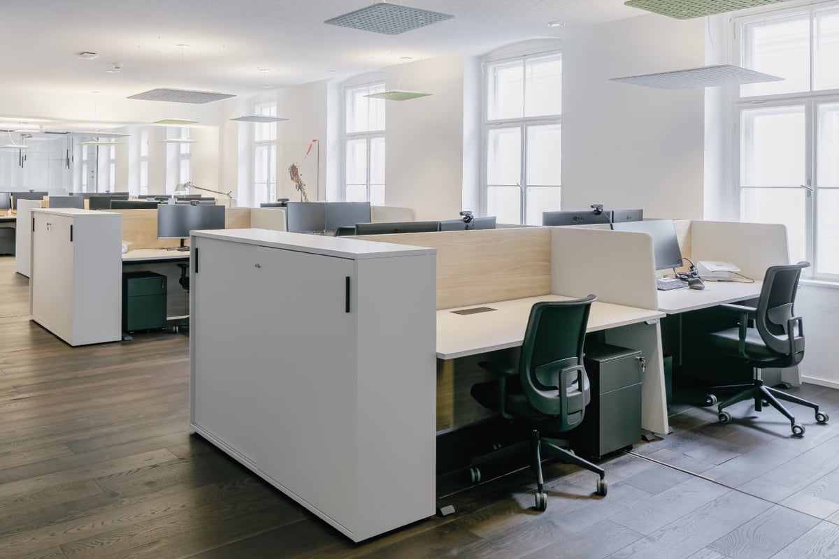 As a result of the collaborative work between Actiu, Sentup and the architect in charge of the project, Claudia Mader, different proposals emerged that were finally presented to employees and the Hartlauer Board of Directors to decide on the final details. The chosen solution maintains the fixed desks, in response to a traditional philosophy that is committed to a "territorial" model, but places them in an open space for enhanced communication and collaboration.