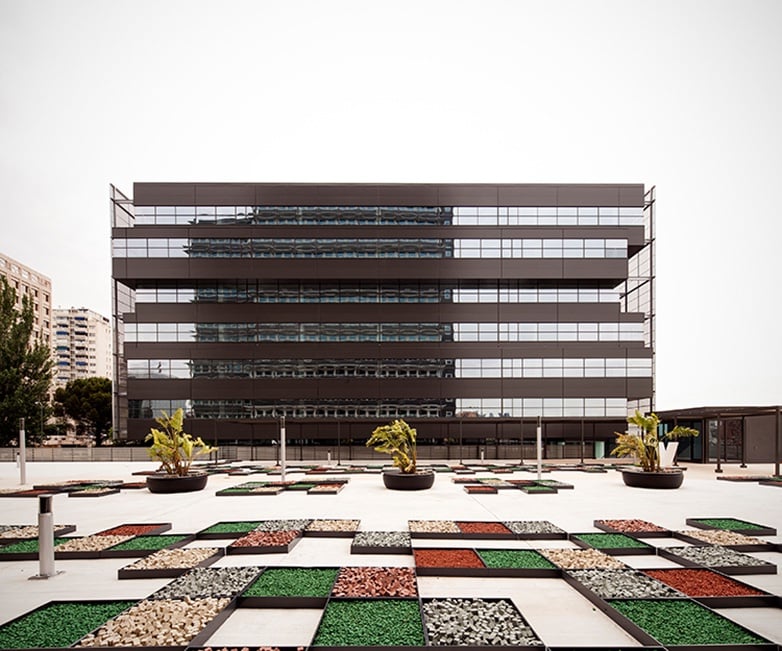 The architect Gabriel Allende was responsible for carrying out the renovation work of the former headquarters of Philips, and the design of the new building, a sustainable complex with excellent features and open and avant-garde spaces. Amongst this complex, there are two padel courts, two cabins for practicing golf and a Mediterranean garden.