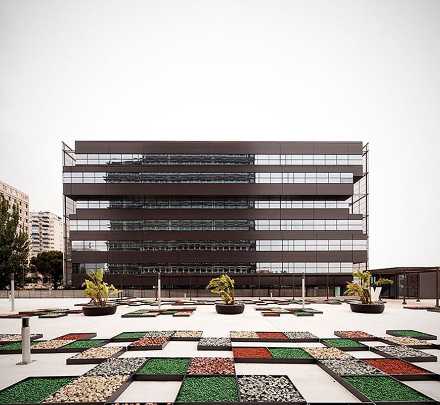 The architect Gabriel Allende was responsible for carrying out the renovation work of the former headquarters of Philips, and the design of the new building, a sustainable complex with excellent features and open and avant-garde spaces. Amongst this complex, there are two padel courts, two cabins for practicing golf and a Mediterranean garden.