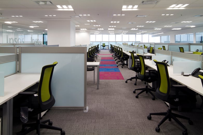 To define environments and departments Split dividers have been installed supported to the floor, matching, just like the desktop, with an upper multi-rail profile and translucent polystyrene tabletop. Each position has an ergonomic Winner chair, capable of adapting smoothly to any position, minimising user effort to maintain or vary the position, all in a natural way and without the need for manual adjustment.