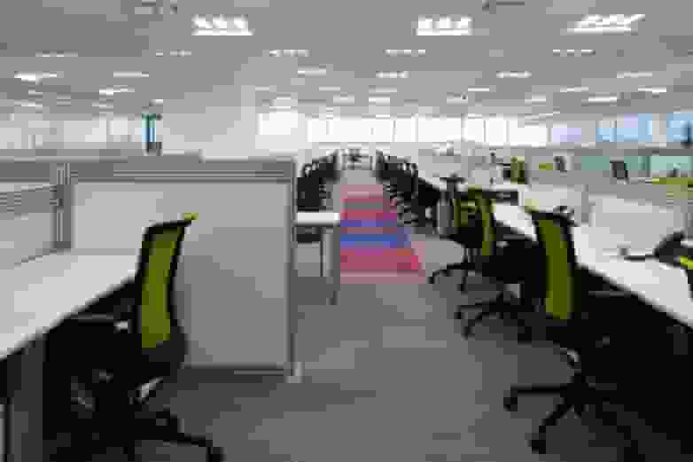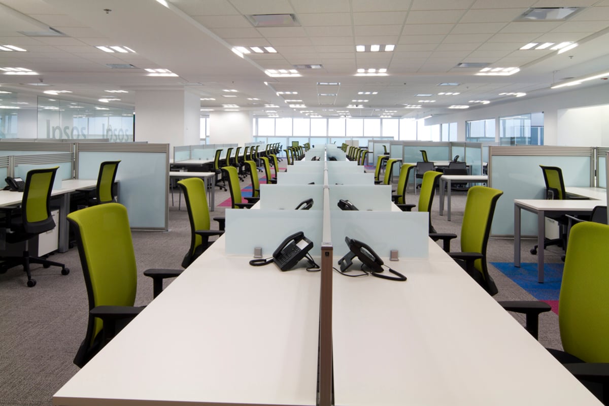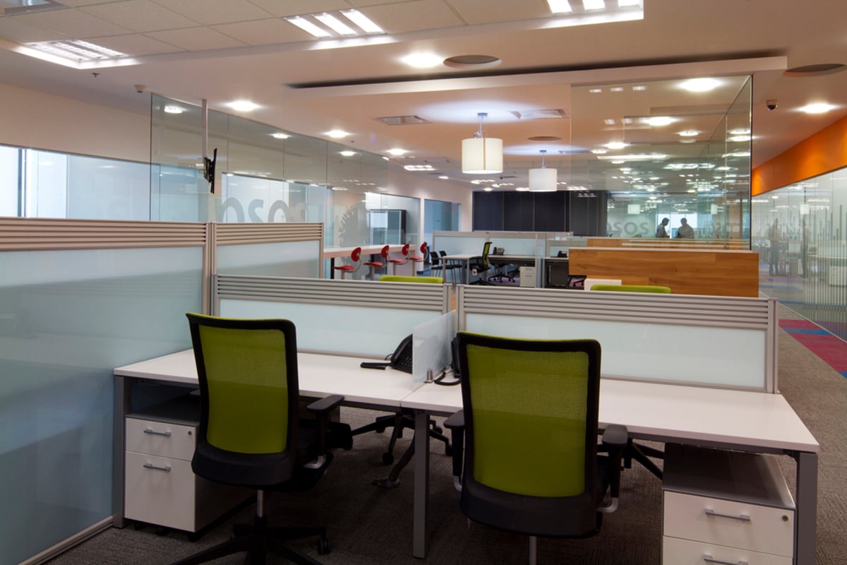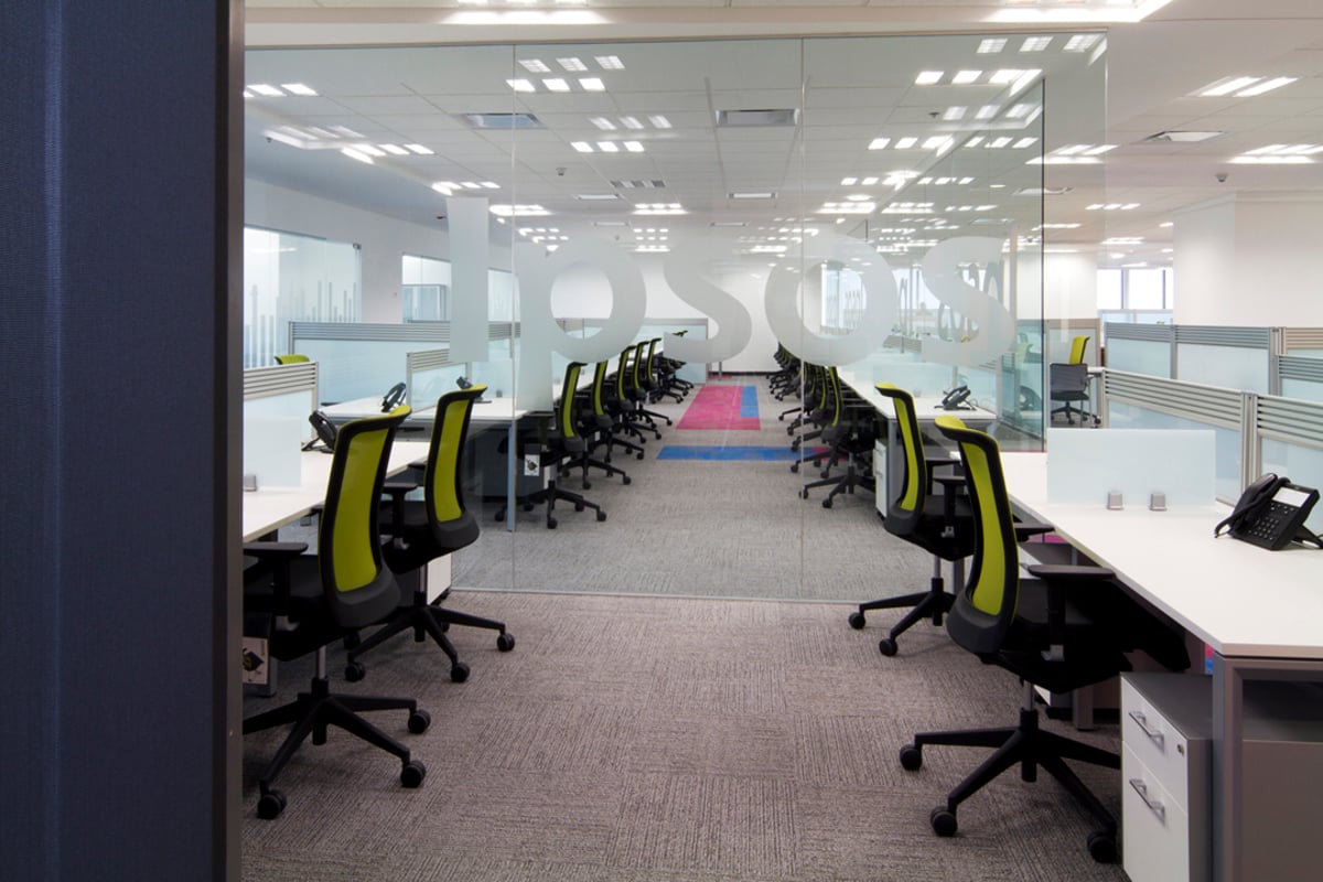 To define environments and departments Split dividers have been installed supported to the floor, matching, just like the desktop, with an upper multi-rail profile and translucent polystyrene tabletop. Each position has an ergonomic Winner chair, capable of adapting smoothly to any position, minimising user effort to maintain or vary the position, all in a natural way and without the need for manual adjustment.