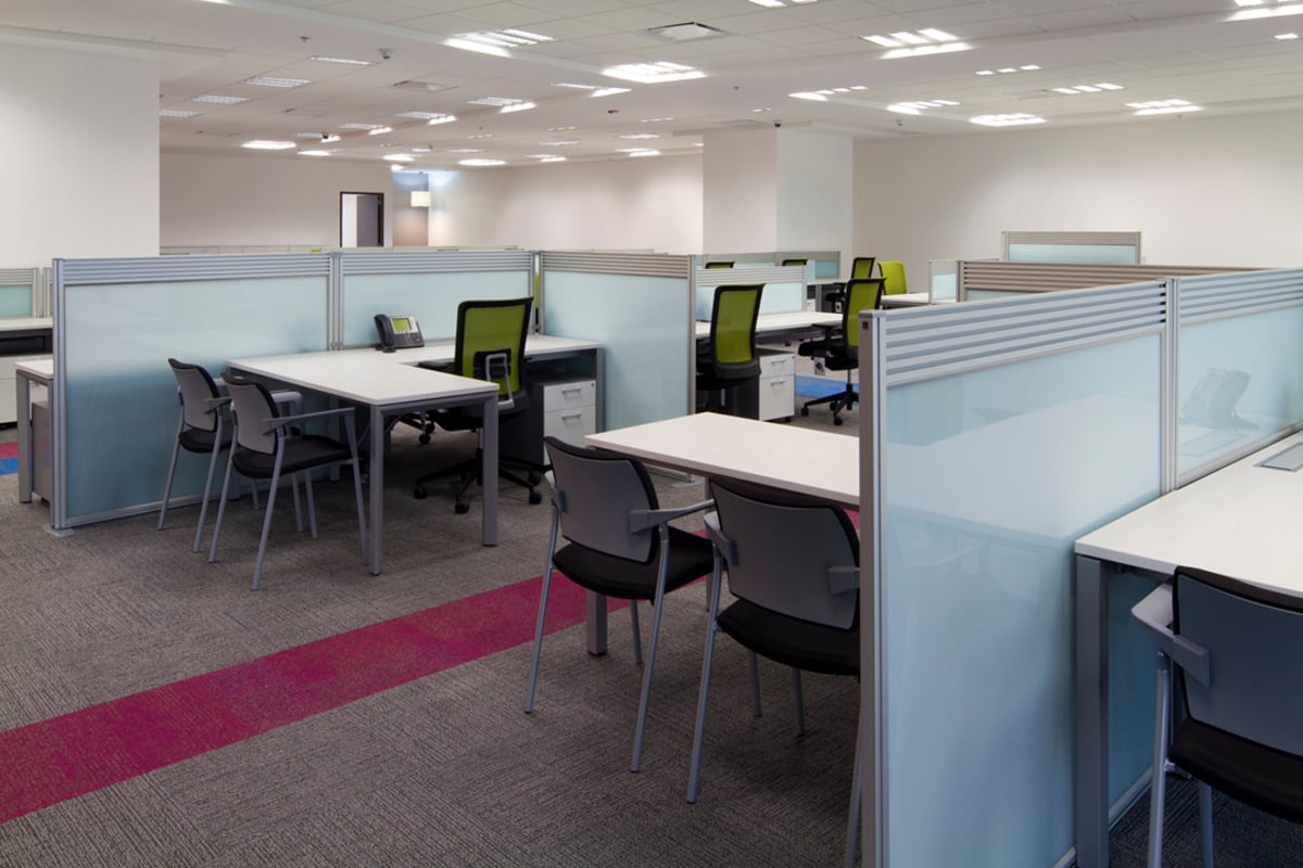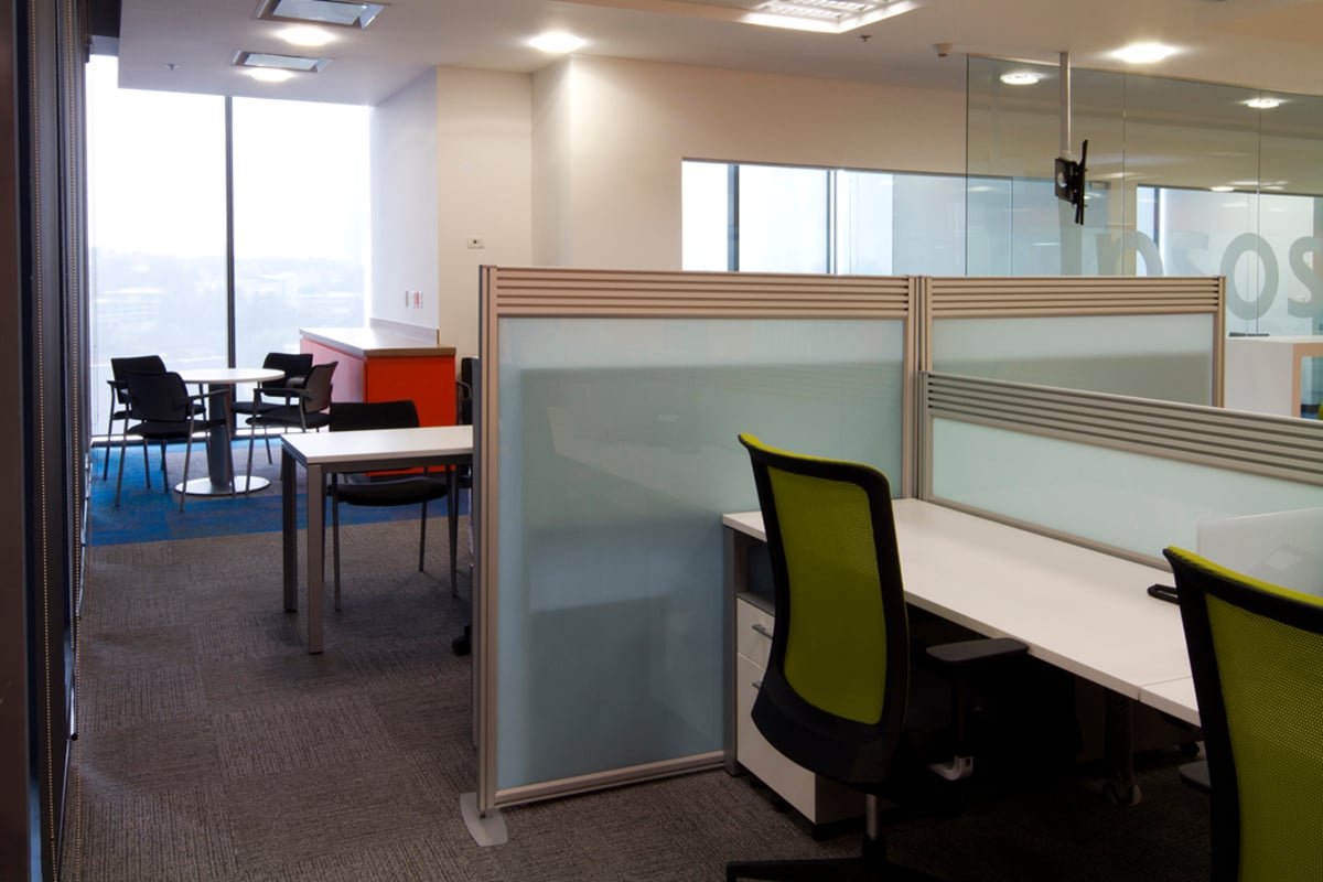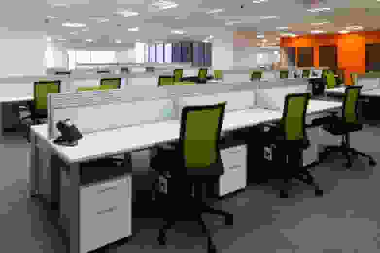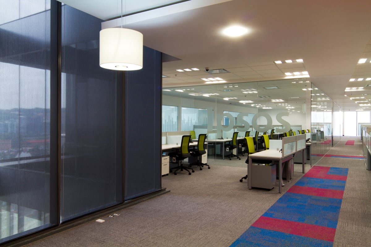 To define environments and departments Split dividers have been installed supported to the floor, matching, just like the desktop, with an upper multi-rail profile and translucent polystyrene tabletop. Each position has an ergonomic Winner chair, capable of adapting smoothly to any position, minimising user effort to maintain or vary the position, all in a natural way and without the need for manual adjustment.