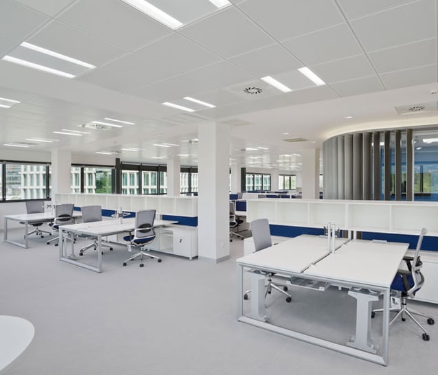 The configuration of the operative positions were carried out using Vital Plus Spine, a new solution for ensuring more efficient work spaces. Sharing the four elements, (desk, lower and higher filing and screens). Spine is articulated as a 'backbone' in which the different compositions are attached to it fusing several daily work solutions in the same position.