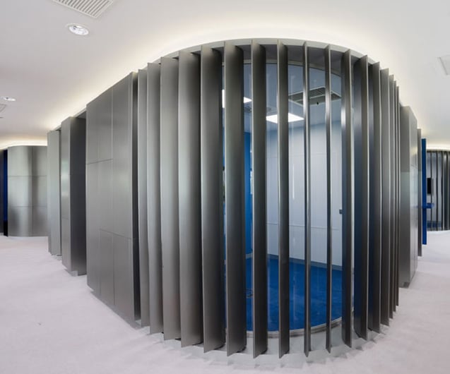 The workshops are distributed under the open office concept around some boxes that make an enclosed space, of different dimensions, for meetings or for situations in which greater concentration or privacy is required.