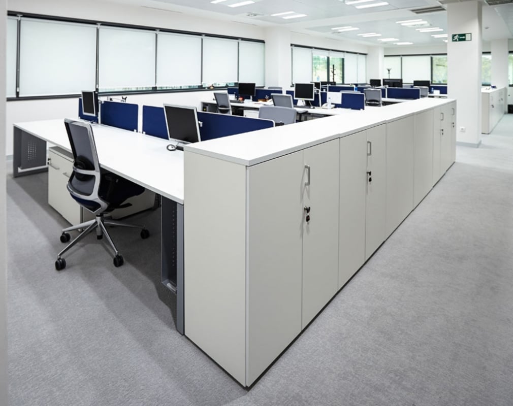 The configuration of the operative positions were carried out using Vital Plus Spine, a new solution for ensuring more efficient work spaces. Sharing the four elements, (desk, lower and higher filing and screens). Spine is articulated as a 'backbone' in which the different compositions are attached to it fusing several daily work solutions in the same position.