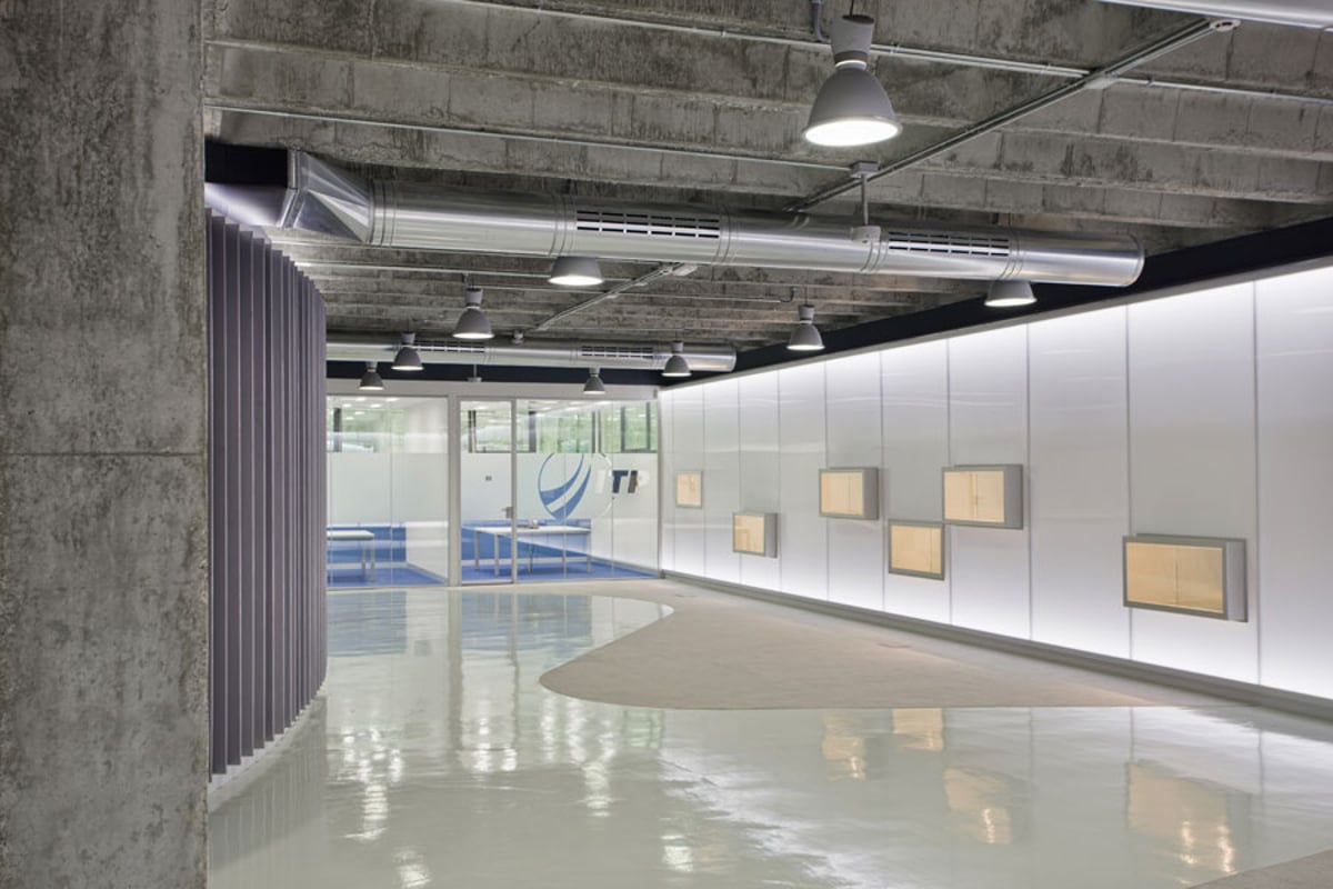The ITP Aero company wanted to differentiate itself, using decoration and office furniture, the work areas were aimed at those moments of leisure and creativity. In the operating spaces the same line of furniture and colours were kept (white and blue), the creative environments invite one to innovate with high desks and Mit stools that keep the user in a more elevated and active position. The result is a project in which the effectiveness and the business values have been combined to create a harmonious, pleasant and highly productive environment.