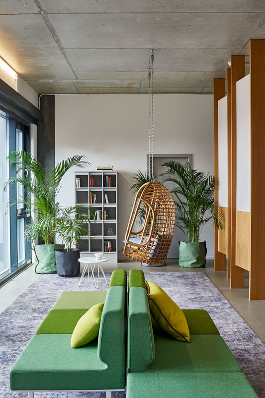 Longo was selected to equip some of the socialising areas and relaxation spaces for the new offices, outside of the more corporate space and with chromatic tones that appeal to nature.