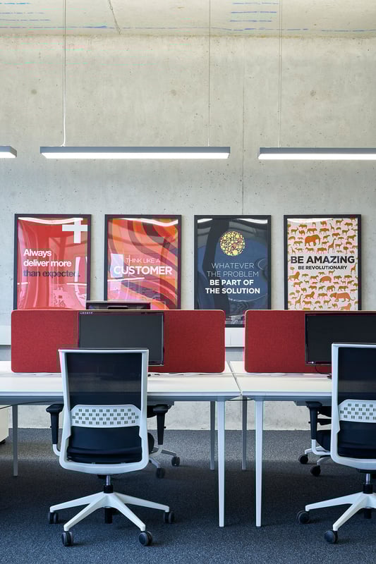 In the 100% operational space and where the working positions are found in the open space, the Longo desks are used, along with screens in different shades, as well as installing Stay as task seating.