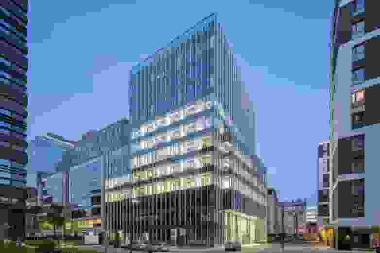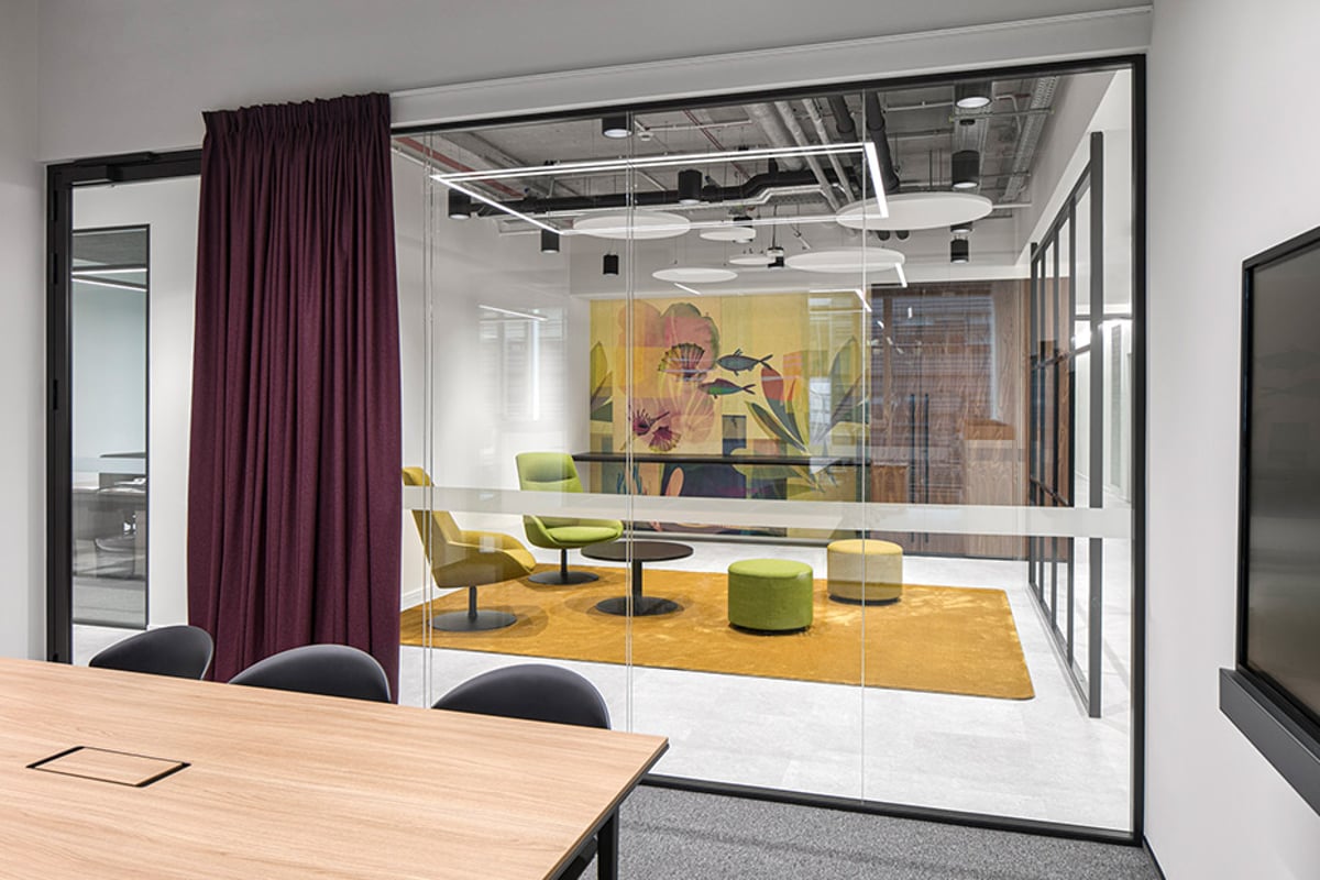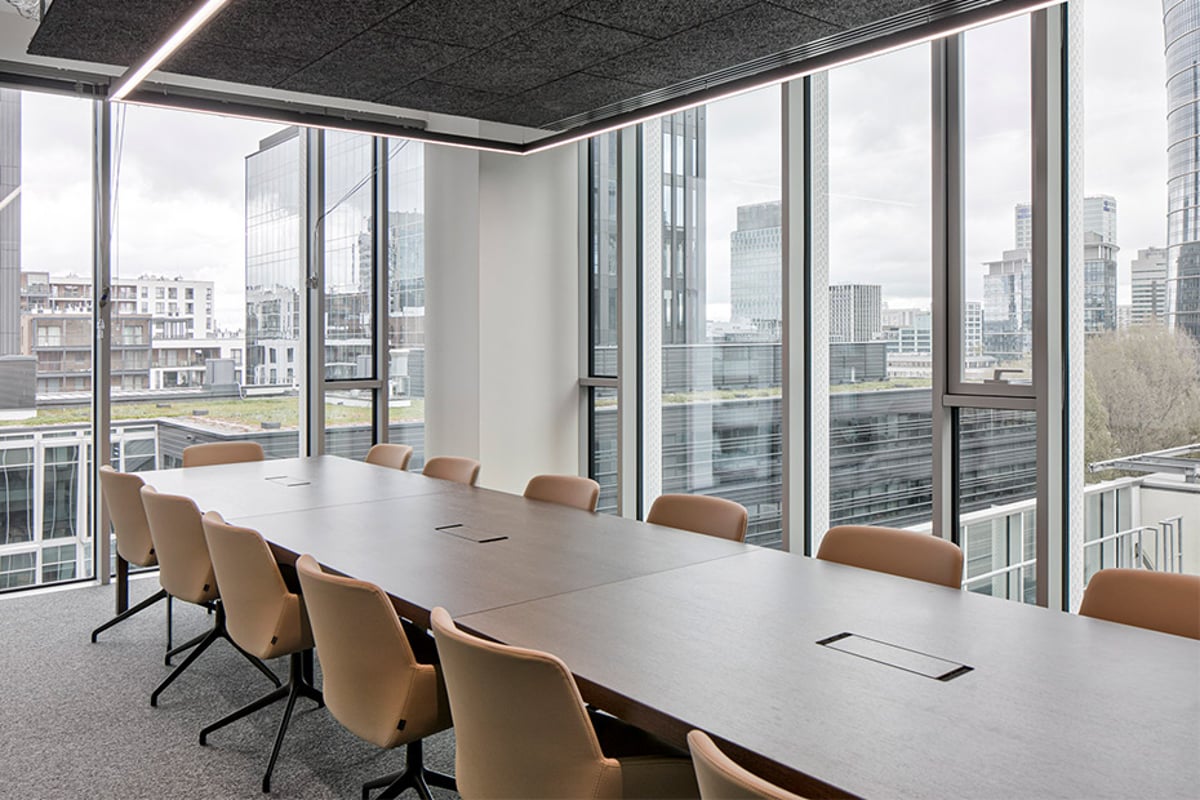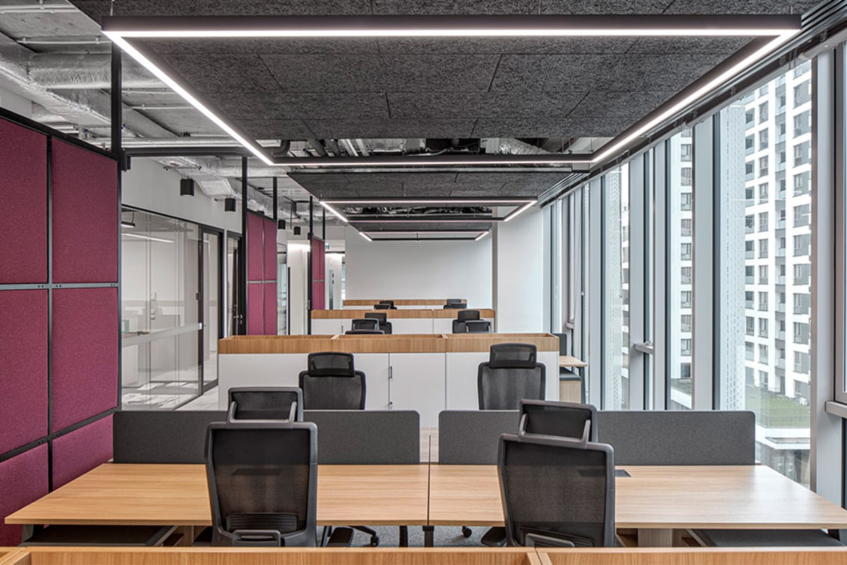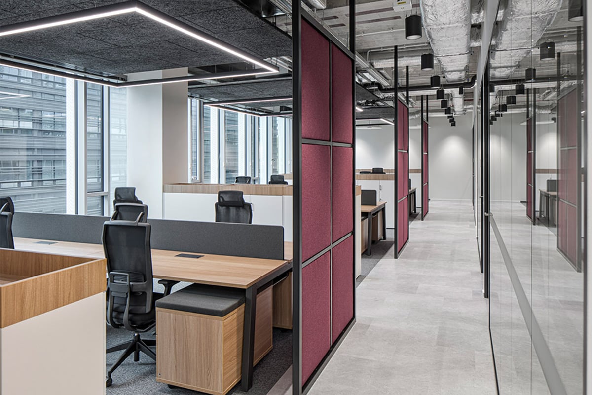 Located in a fast-growing commercial area of the Polish capital, the offices occupy five floors of a building built in 2019 and shared with other companies. A space that was delivered in a "raw" state, with only the shell of the facade and the vertical access core, which the real estate team of the pharmaceutical company has aesthetically and technically refurbished.