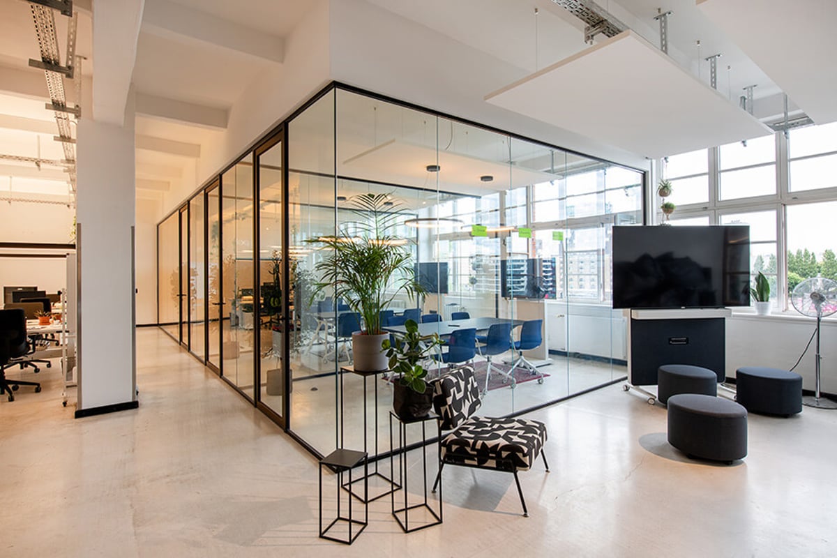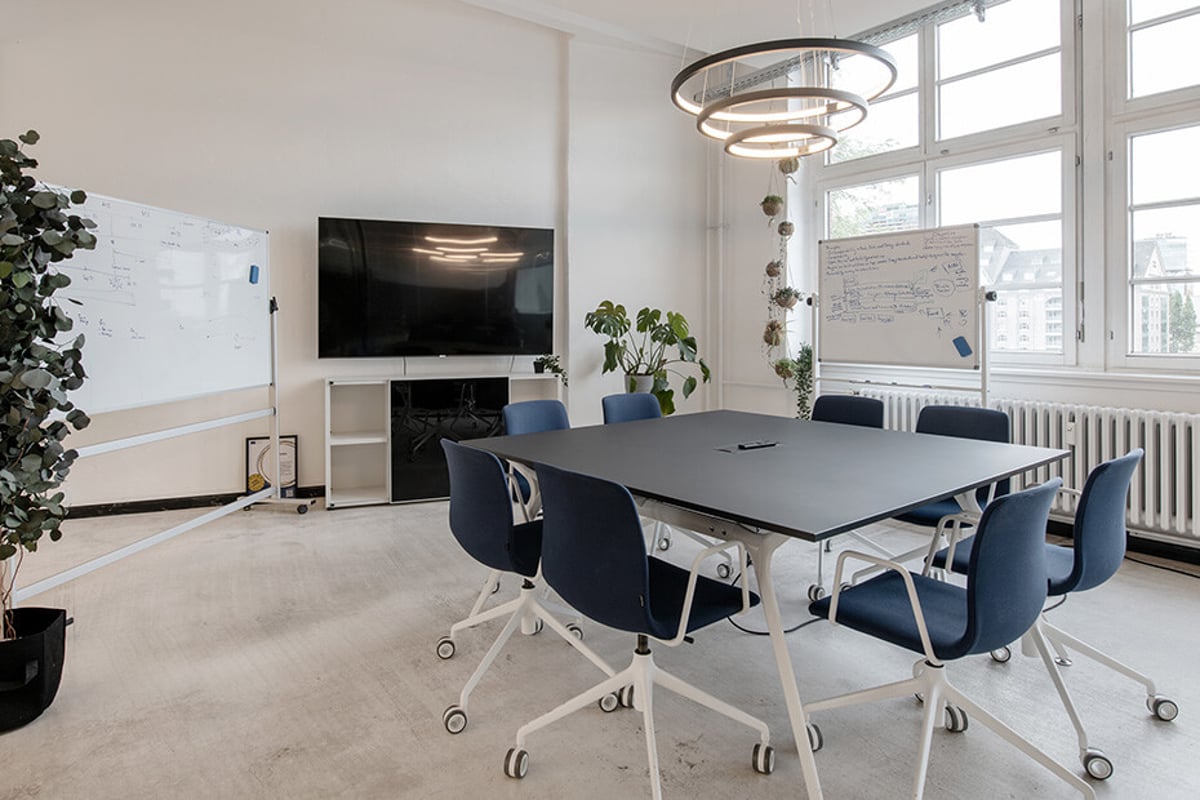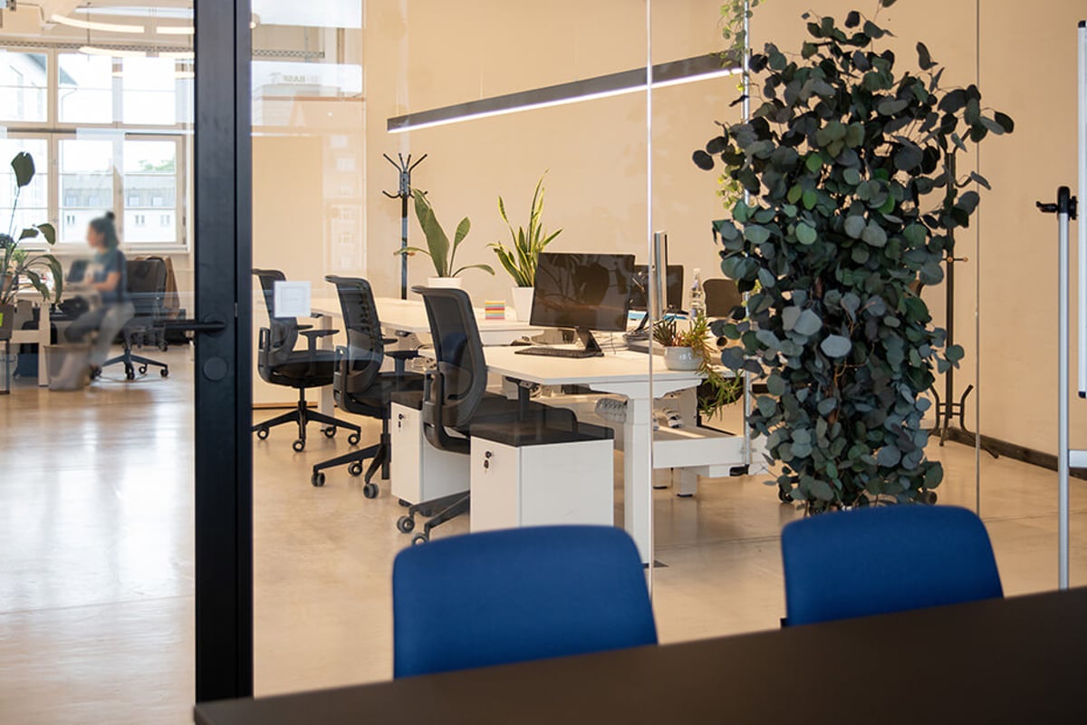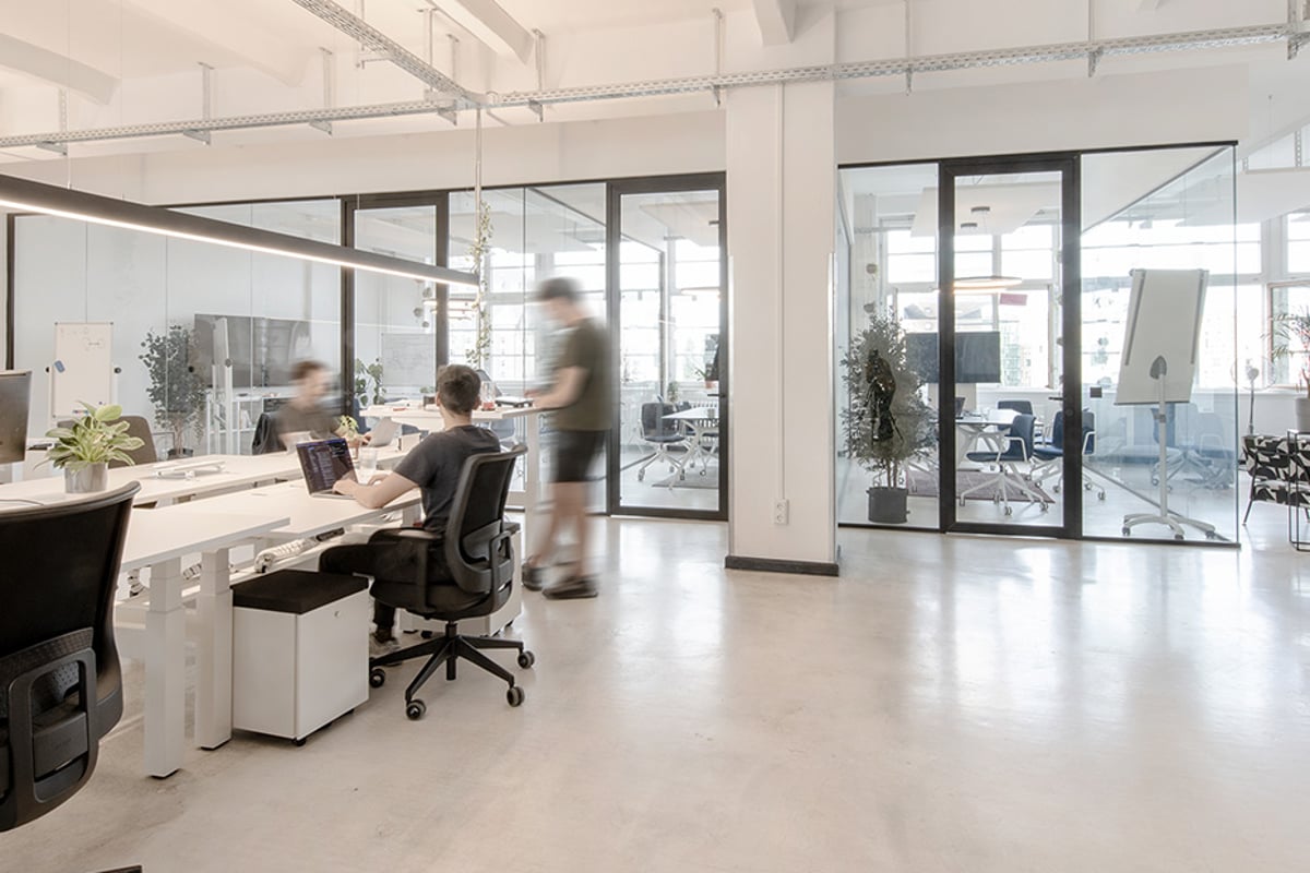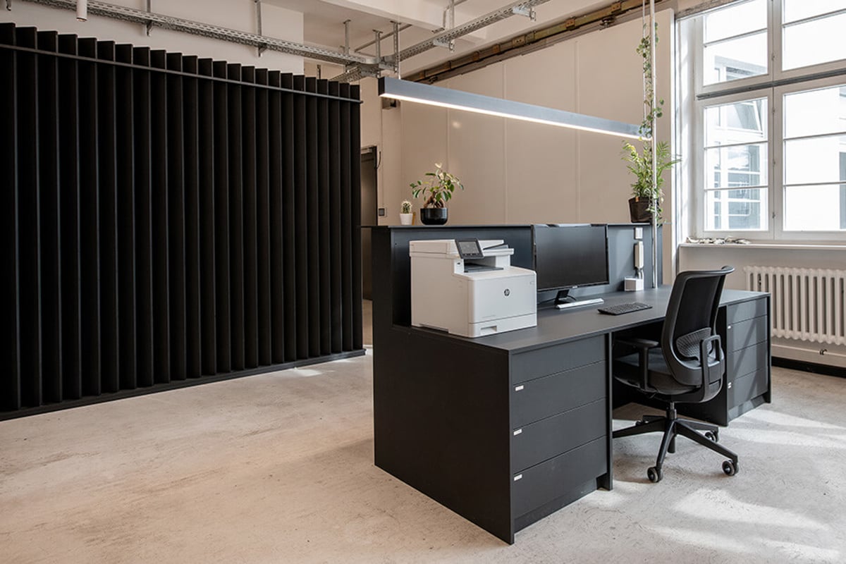 Located in the Kreutzberg district, the new offices respond to the work philosophy of a very agile, dynamic and flexible company in terms of hierarchies and timetables. An open-plan space with an open kitchen and communal area, fixed and flexible workstations, and three separate meeting rooms with glass partitions.