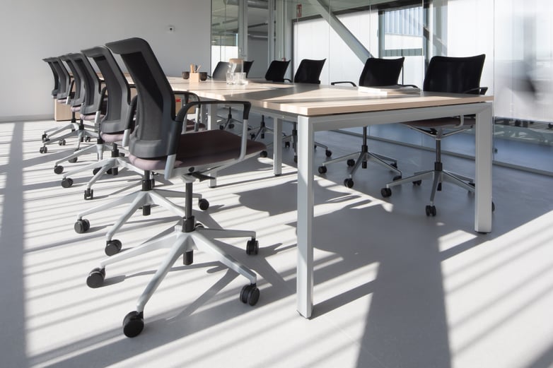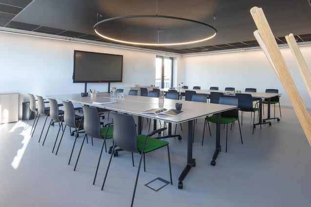 To facilitate movement, the meeting rooms have opted for Urban Plus chairs with wheels and a gas lift, and an ergonomic tilting backrest that guarantees comfort over extended periods of time. A Block storage unit with minimalist and austere lines allows the space to be kept tidy when not in use.