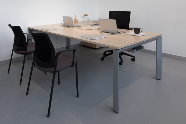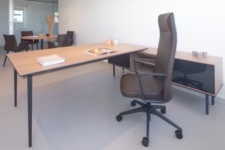 With more privacy, the second floor is home to the management team's offices, presided over by elegant Longo desks with abundant storage on the sides and Cron office chairs that add some extra class. All have a small meeting area that on this occasion has been furnished with Tábula tables and comfortable Uma meeting chairs.