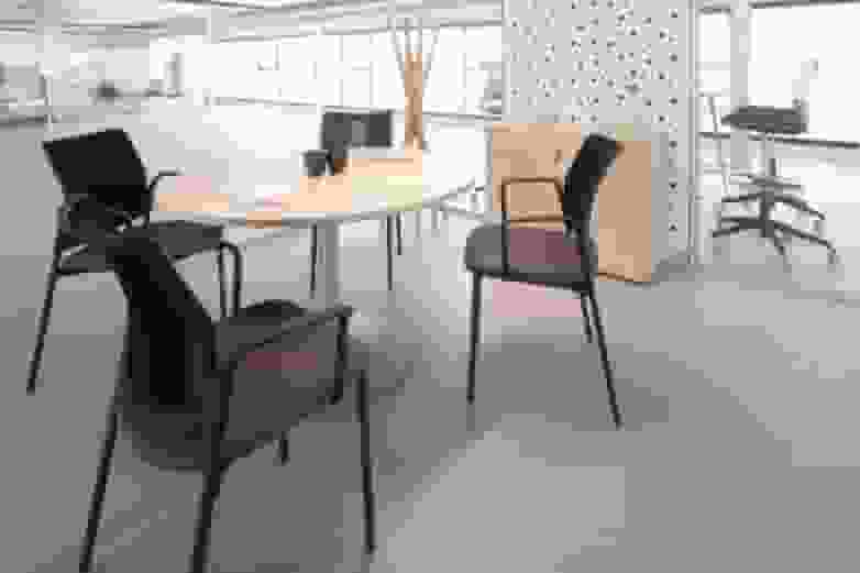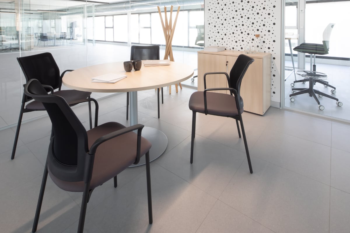 With more privacy, the second floor is home to the management team's offices, presided over by elegant Longo desks with abundant storage on the sides and Cron office chairs that add some extra class. All have a small meeting area that on this occasion has been furnished with Tábula tables and comfortable Uma meeting chairs.