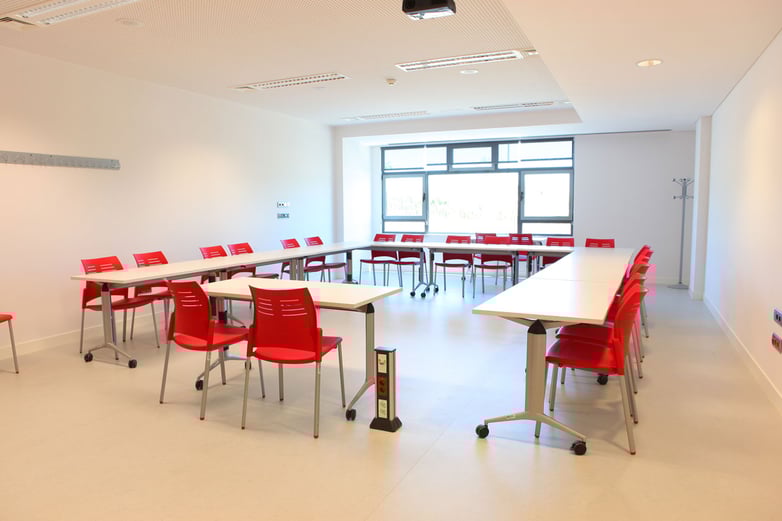 The building has 16 classrooms. Nearly half the space is designed to hold the profession training centre, in which they have spacious rooms for laboratories, practice rooms and classes which have been equipped combining the programs, Trama, folding desks and Cool E100, clean aesthetics with multiple configurations.