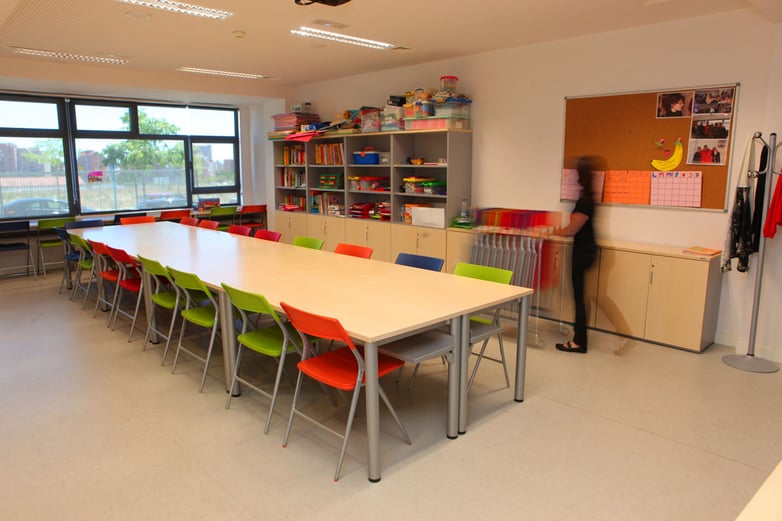 Amongst the new developments of the new location the Adult school and the children's playroom can be found. These spaces keep the same line in furniture, functional and versatile, present in the classrooms and laboratories. For the seating three programs have been used which fit perfectly with the design of the developed environments: Spacio; light and simple, Uma; versatile and ergonomic and Plek; fun for its colours.