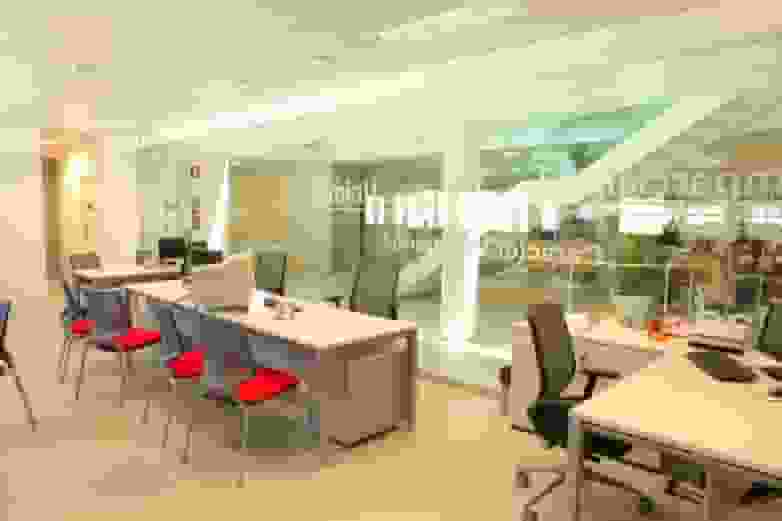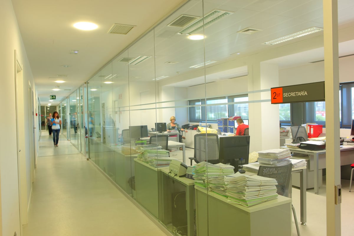 We can find twin, extendable, straight desks with translucent glass screens. Furthermore, they have been complemented with mobile pedestals with three drawers and Modular cabinets in different sizes and interior configurations, depending on their needs. The collective chair Tnkid, developed from the TNK, also serves as a visitor chair for users of the library and the reading room. It has been combined in red for the seat and grey for its original back in accordance with the corporate colours of ONG.