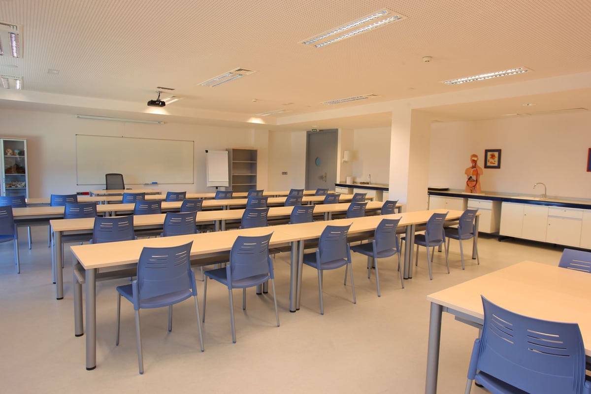 The building has 16 classrooms. Nearly half the space is designed to hold the profession training centre, in which they have spacious rooms for laboratories, practice rooms and classes which have been equipped combining the programs, Trama, folding desks and Cool E100, clean aesthetics with multiple configurations.