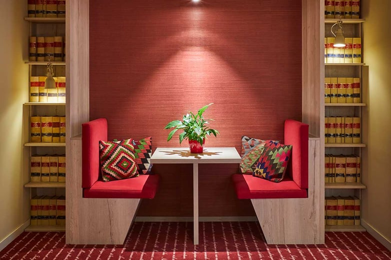 As places for holding informal meetings, working flexibly, or resting, each ´square´ has its own unique interior design that lives up to its name (´Celebration Room´, ´Red Room´, ´Library´...). Furthermore, and to make these ´squares´ seem more spacious, the reusable formwork system has been left exposed; refurbished and integrated into the colour of each room to give the impression of being high.