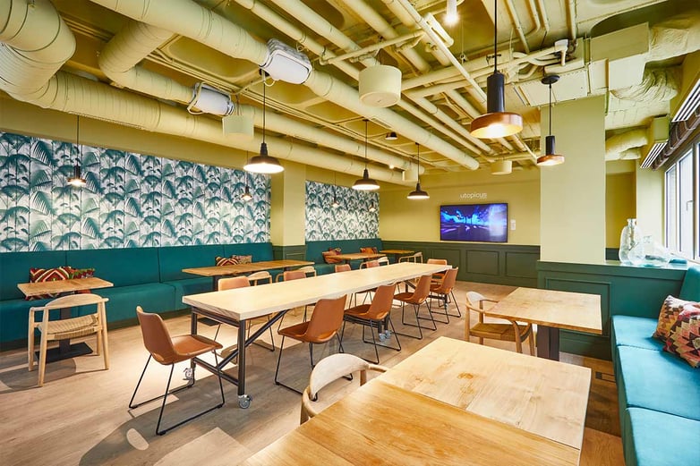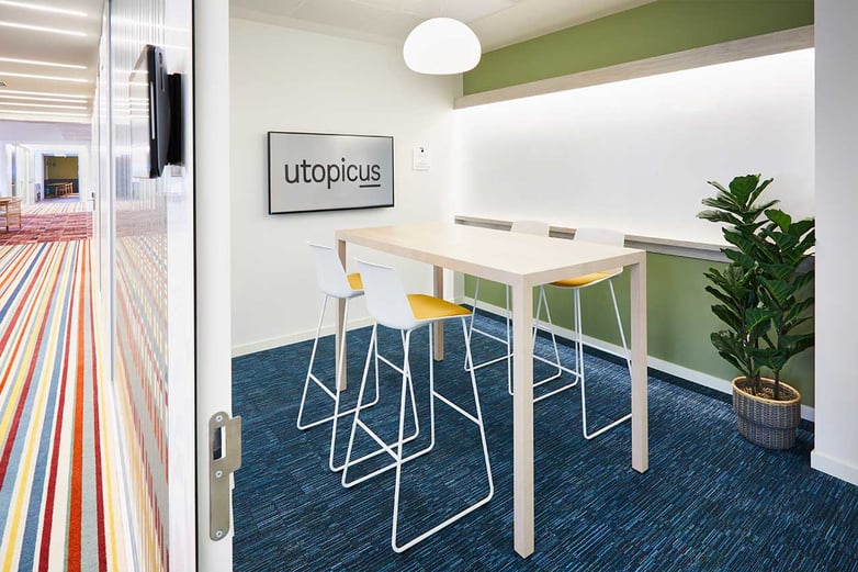 Just like in other Utopicus spaces, the offices have work areas with flexible workstations and private offices, meeting and training rooms, as well as other meeting areas and communal spaces such as the canteen or the Skype booths, ensuring user comfort and a unique design at all times.