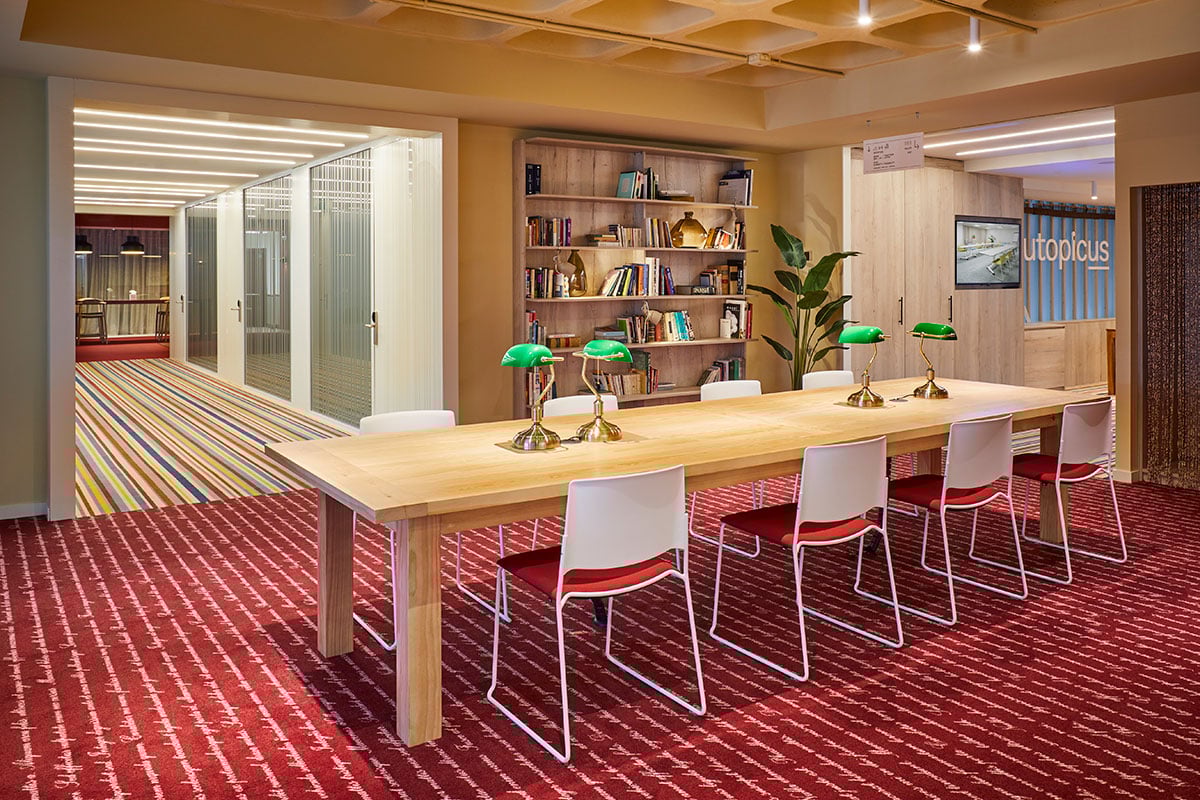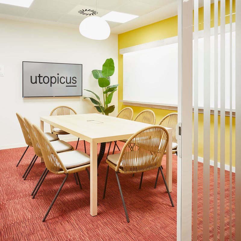 Just like in other Utopicus spaces, the offices have work areas with flexible workstations and private offices, meeting and training rooms, as well as other meeting areas and communal spaces such as the canteen or the Skype booths, ensuring user comfort and a unique design at all times.