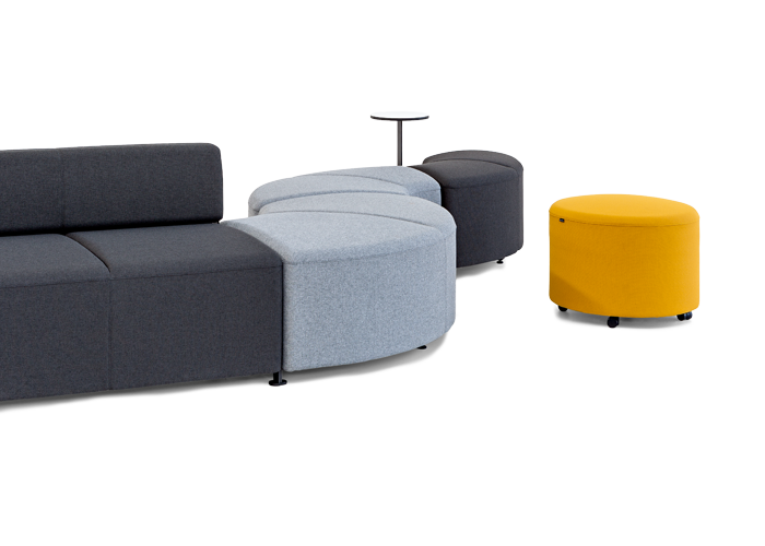 The depth of the BEND range, both in its shapes and its finishes, allows you to create unique layouts. The versatility of each module comes from its folded steel supports with different heights or solid beech wood, for a greater or lesser visual weight.