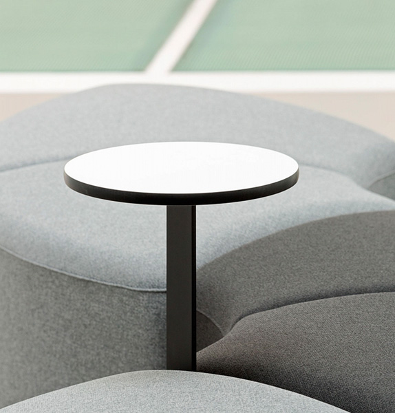 The BEND range has accessories such as side tables at the height of the seat, writing pads, leg extensions to use as table structures, or even the possibility of combining furniture with vegetation. Options that revolve around the resulting layout, making it even more dynamic in nature.