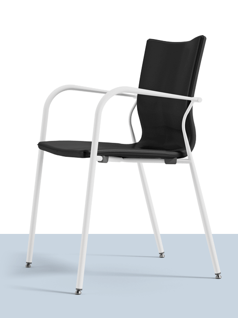 The steel tube structure makes Ikara a unique chair in any of the finishes in which it is available: aluminised, chrome or white. It can also incorporate a swivel base with self-return and oscillating levellers.