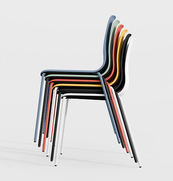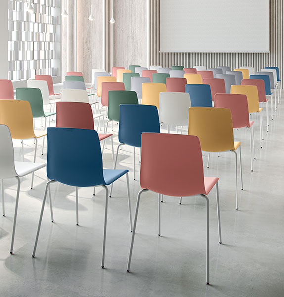 The 4-legged chair allows up to 30 chairs to be stacked on the stacking trolley and up to 10 chairs as standard (for models without an upholstered seat).