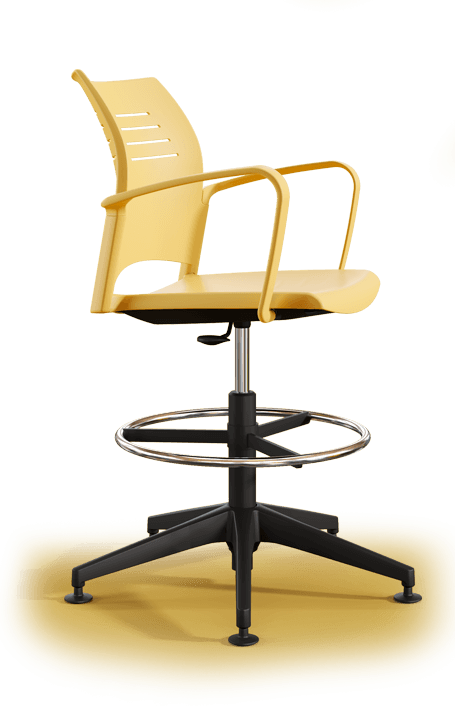 The Spacio draughtsman chairs encourage informal gatherings and quick or impromptu meetings in which the most unexpected ideas arise. The ergonomic footrest ring ensures a comfortable posture so that the good ideas keep flowing.