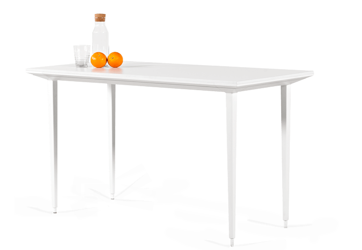 The LONGO desk's inverted pyramid-shaped legs play their part in creating that characteristic sensation of a raised tabletop and visual lightness in the room.
