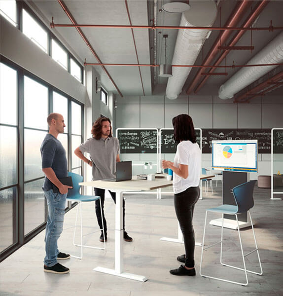 Meetings that go on forever are one of the main causes of inefficiency in organisations. That's why scrum meetings are all the rage. Mobility has meeting tables capable of providing spaces for these meetings to take place standing up, thereby achieving greater agility by improving decision making capacity.