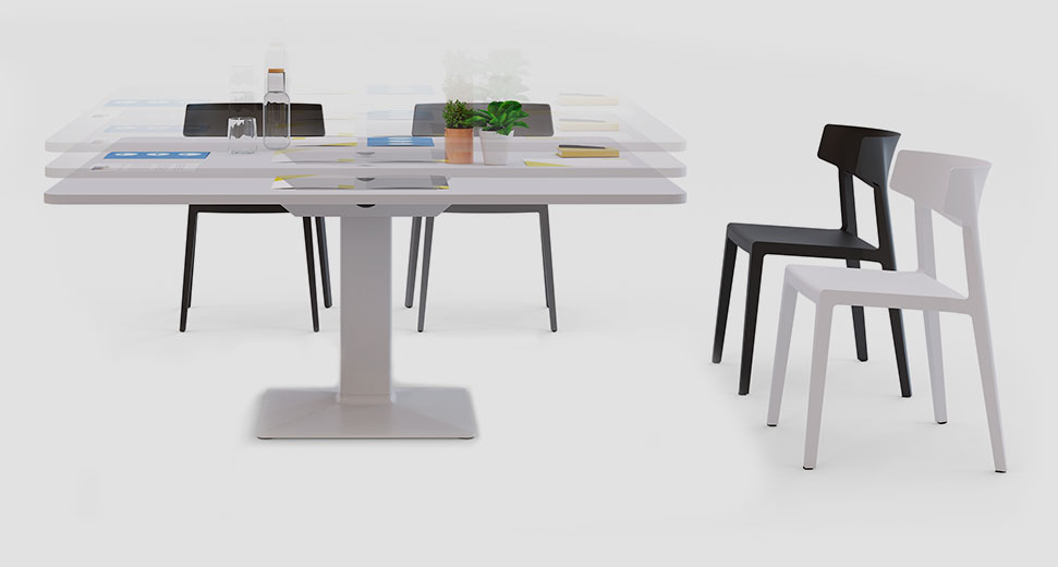 Power has models for executive and meeting spaces with large fixed tables. Fixed or height-adjustable tables that come in a wide range of finishes.