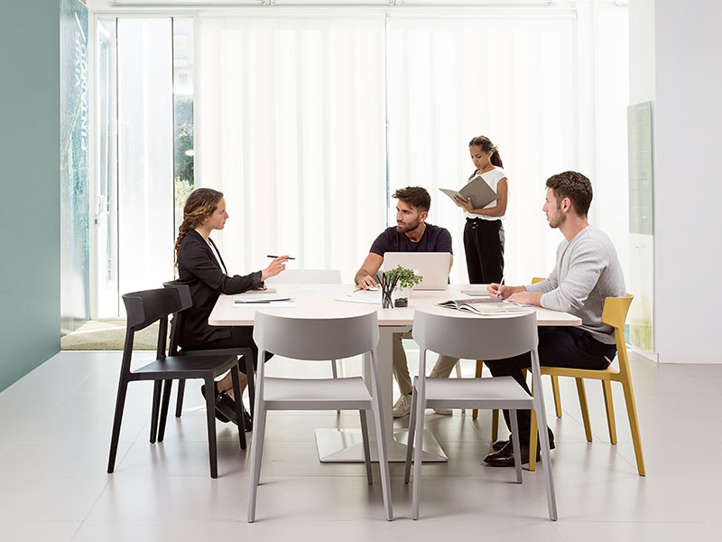 Power makes it possible to configure double workstations that foster communication and have accesses for cable channelling, in desks and in complementary cupboards alike, making it easier to use any type of electronic device. What's more, it has optional sound-absorbing screens for times when concentration is needed.