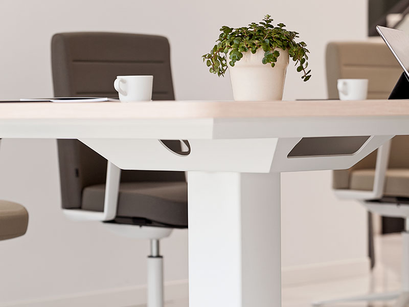 Power has models for executive and meeting spaces with large fixed tables. Fixed or height-adjustable tables that come in a wide range of finishes.