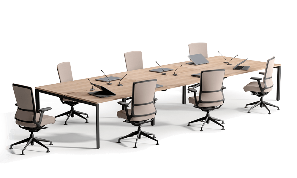 VITAL Plus allows the legs to be recessed and the tabletops to be joined together, creating quadruple desks, conference tables or large meeting spaces.