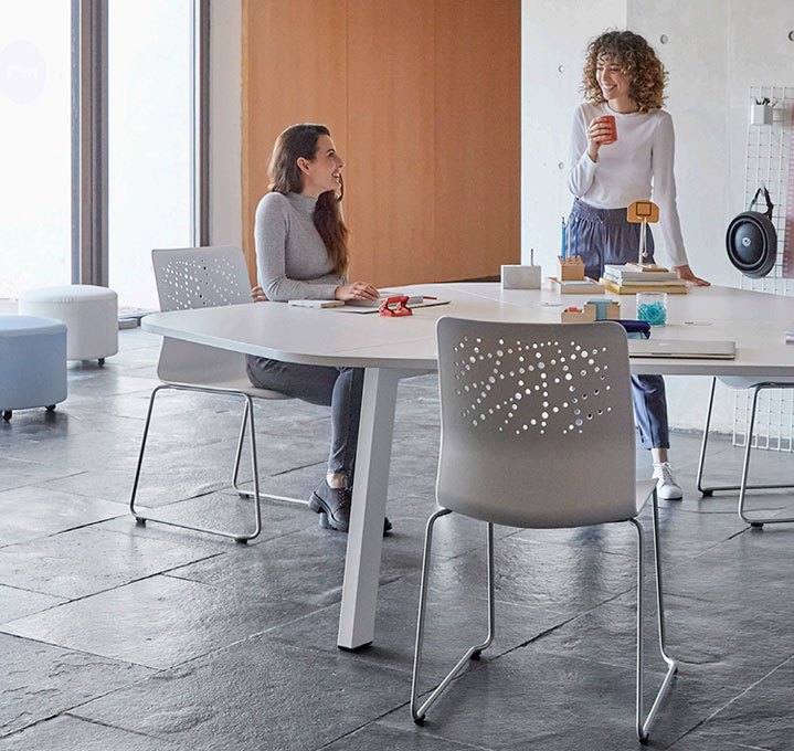 Vital Plus desks can be separated from the different workstations by sound absorbing partitions. This way, personal work does not interfere with the work of the rest of the team and, at the same time, everyone has a shared space that encourages conversation and creativity.