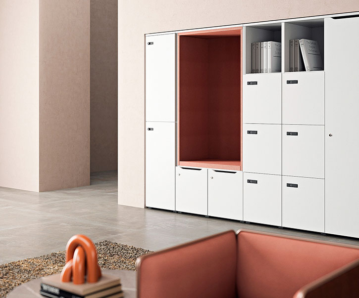 Its modular structure offers customized storage, integrates natural elements that humanize the environment and provides order without sacrificing aesthetics. An intelligent system that adapts, organizes and improves the daily office experience.