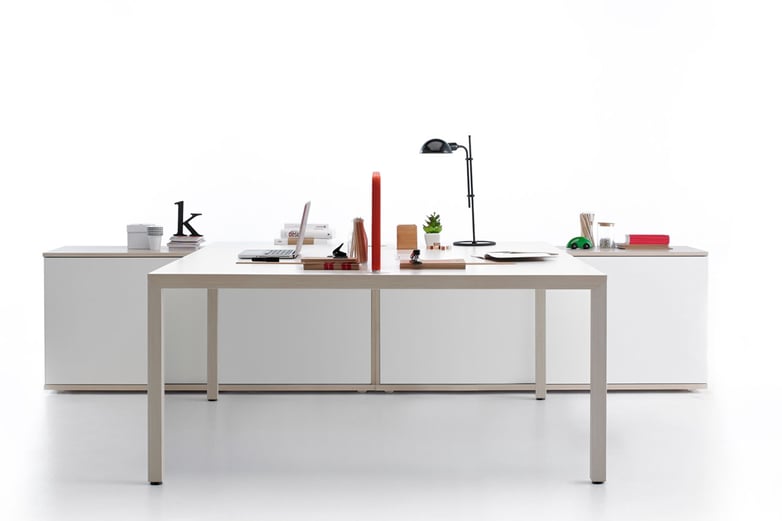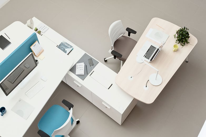 Si las mesas incluyen puestos de trabajo diferentes, es interesante que se eleven de manera individual para cada persona, con una salida específica para las conexiones eléctricas y espacios de almacenaje. El hecho de que cada empleado pueda ajustar a su medida la altura de la mesa - con independencia de la elevación que escojan sus compañeros - permite al mobiliario responder de manera específica a las necesidades de cada uno.