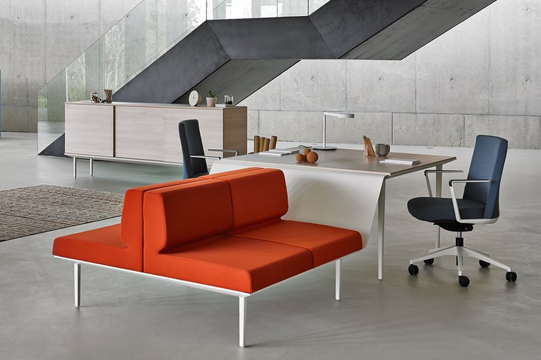 Si buscamos mesas individuales, tanto para puestos operativos como colectivos, el diseño es clave en la definición del producto. Longo es un sistema de mesas y soft seating de gran ligereza y elegancia, que permite crear no sólo mesas de trabajo, sino todo un conjunto de equipamiento que combina el trabajo operativo y los momentos de distensión, gracias al diseño de sus distintos módulos, capaces de crear múltiples posibilidades a partir de sillones, armarios y paneles acústicos.