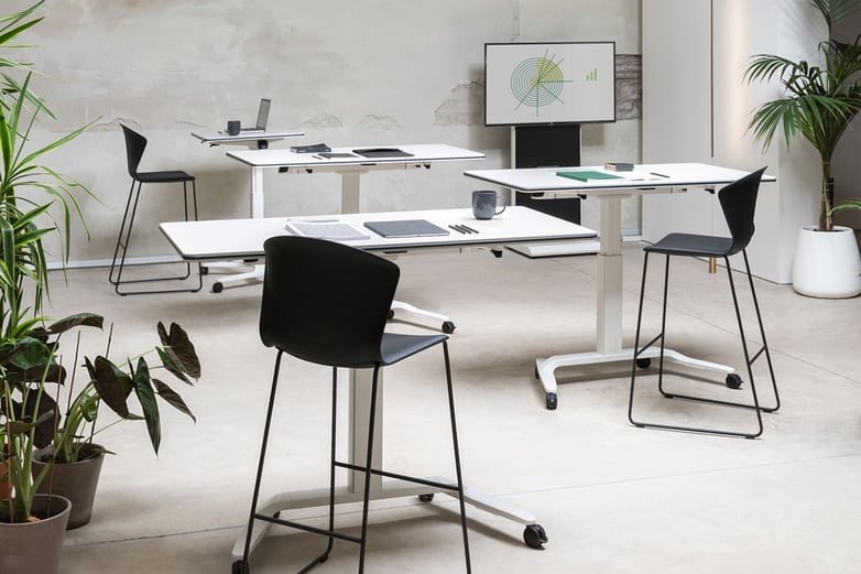Según la directora de Innovación del Instituto de Biomecánica de Valencia (IBV), Rosa Porcar, sillas y mesas deben permitir el movimiento natural del cuerpo humano, evitando las posturas estáticas y continuadas en el tiempo. De ahí que las mesas elevables estén cobrando cada vez más protagonismo, así como las mesas individuales con el cableado escondido y que cuenten con acceso directo e individual al almacenaje y con paneles fonoabsorbentes para mejorar la privacidad.