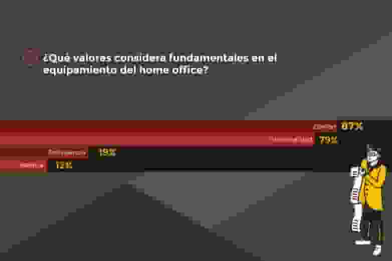 Pese a ello, la práctica totalidad de los encuestados, el 86%, considera que el mobiliario debe ser un elemento fundamental para el teletrabajo. Al valorar las principales prestaciones que debería tener la oficina en casa, los encuestados destacan el confort y la funcionalidad como principales, y la polivalencia y la estética como aspectos no tan relevantes.